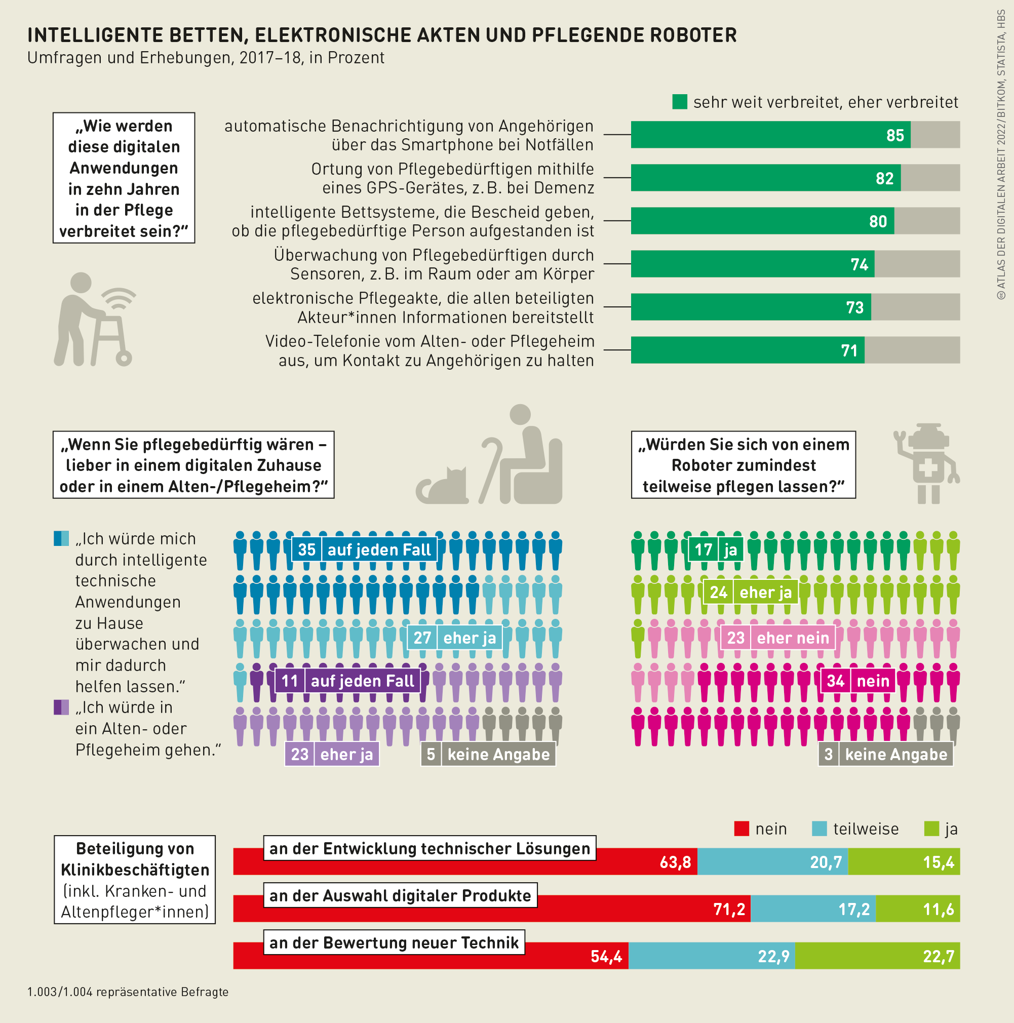 zurück Atlas der digitalen Arbeit 2022: Intelligente Betten, elektronische Akten und pflegende Roboter Quelle: Atlas-Manufaktur Berlin Grafik als PNG herunterladen Zugehörige Themen Automatisierung / DigitalisierungGesundheitMitarbeiterbeteiligung gemerkt merken teilen Auf Facebook teilen Auf Bluesky teilen Auf Mastodon teilen Auf Linkedin teilen Per E-Mail teilen
