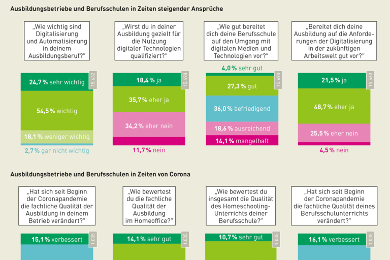 Warum sich eine Ausbildung lohnt, wie weit Wunsch und Wirklichkeit in jungen Familien auseinanderliegen, was Beschäftigte zufriedener macht und wie Gruppen ehrlicher werden könnten.