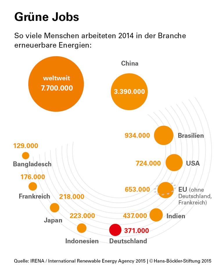 Egal, welche Richtung stärker zum Zuge kommt: Deutliche Auswirkungen auf die Arbeitswelt haben beide Varianten. Was Green Economy bedeutet, war Schneidewind zufolge in den vergangenen Jahren bei den regenerativen Energien zu beobachten. An die Stelle der Großunternehmen traten dezentrale Strukturen. Kleine und mittlere Unternehmen zahlen aber meist niedrigere Löhne; der gewerkschaftliche Organisationsgrad ist geringer. „Eine radikal dezentralisierte Wirtschaft wird diese Herausforderungen verschärfen“, so der Wissenschaftler. „Selbstunternehmertum, lebenslanges Lernen und wachsende Flexibilität“ würden die Arbeit der Zukunft in einer kleinteiligen, hochtechnologischen Wirtschaft prägen.