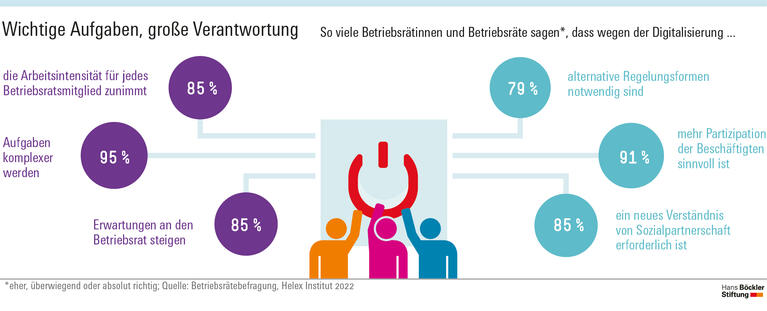 Angestoßen durch die Neuerungen kommt es in einigen Gremien zu einem Prozess des Nachdenkens: Neue Rollen werden identifiziert, Verhaltensregeln verändern sich und auch das Selbstverständnis wandelt sich. Ein modernes Verständnis von Mitbestimmung bedeutet für viele Arbeitnehmervertreter und -vertreterinnen, die Arbeitsorganisation im Unternehmen ständig zu beobachten und neu auszuhandeln.