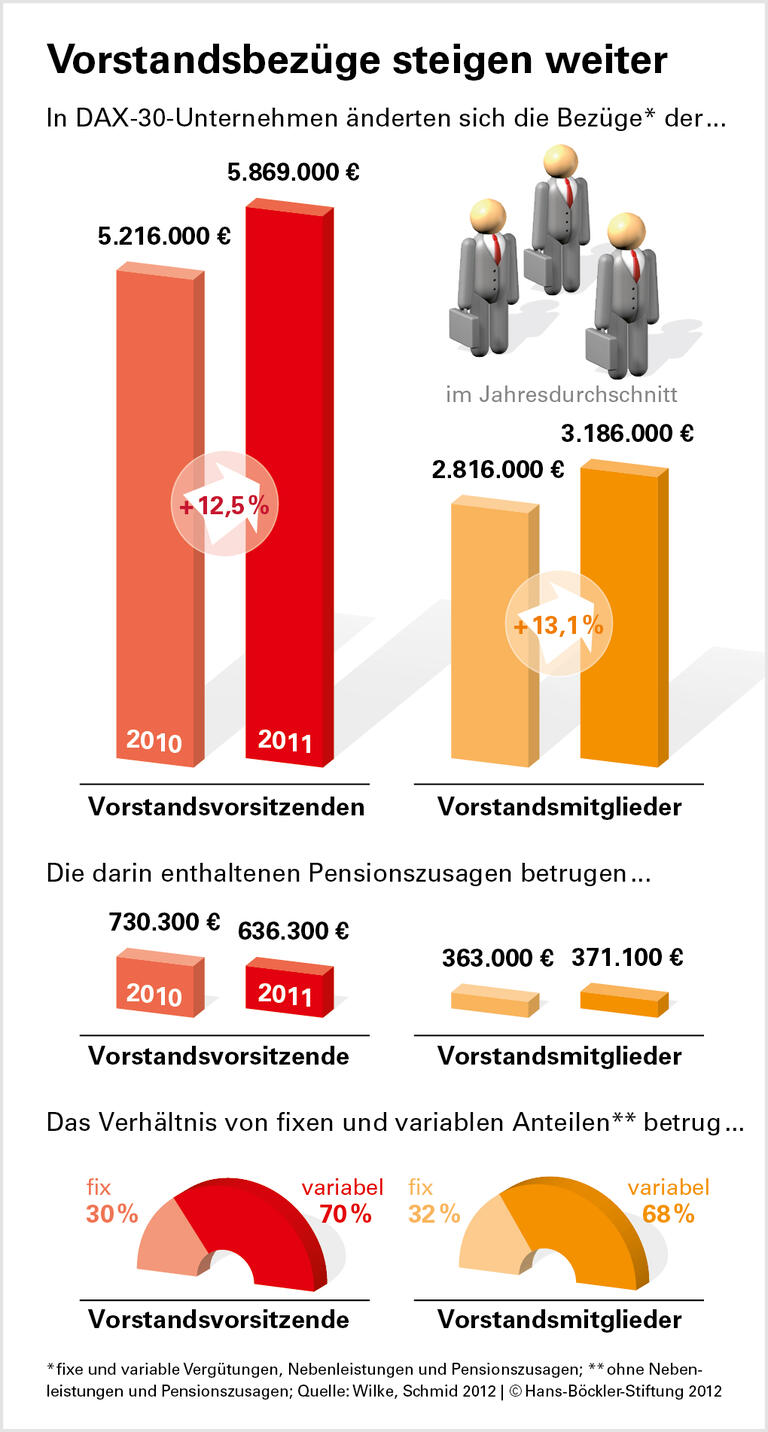 Peter Wilke, Katrin Schmid: Entwicklung der Vorstandsvergütung 2011 in den DAX-30-Unternehmen (pdf), Arbeitspapier 269 der Hans-Böckler-Stiftung, September 2012.