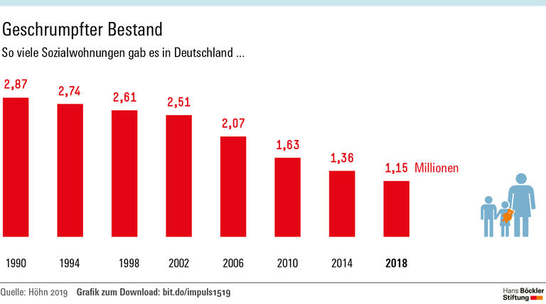 Gut eine Million Sozialwohnungen gibt es heute in Deutschland. 1987 waren es in der alten Bundesrepublik noch fast viermal so viele. Darauf macht ein aktueller Report der Hans-Böckler-Stiftung aufmerksam. Begonnen hat der Schrumpfungsprozess der Analyse zufolge bereits 1988, als die damalige Bundesregierung das Wohnungsgemeinnützigkeitsgesetz aufhob. Bis dahin waren Wohnungsgesellschaften von der Steuer befreit, deren Geschäftsmodell nicht in der Renditemaximierung, sondern in der Versorgung der Bevölkerung mit Wohnraum bestand. Das Steuerprivileg war mit der Bedingung verknüpft, dass die Gewinne eine bestimmte Marge nicht überschreiten durften. Hinzu kommt: Der Bestand von Sozialwohnungen sinkt automatisch, wenn keine neuen mehr gebaut werden. Denn nach 20 bis 30 Jahren läuft die Sozialbindung meist aus. Vermieter, die ihre Wohnungen – als Gegenleistung für öffentliche Fördermittel – nur zu festgelegten Mietpreisen an Personen mit geringen Einkommen vermieten durften, sind nach Ablauf der Frist an keine Auflagen mehr gebunden. Zum „schleichenden Abschied aus dem sozialen Wohnungsbau“, so Hilmar Höhn, der Autor des Reports, sei es auch gekommen, weil „die Mieten auf Dauer ein erträgliches Maß erreicht zu haben schienen“, nachdem sich in den 1990er-Jahren die Einschätzung verbreitet hatte, Deutschland sei „fertig gebaut“. Die damaligen Bevölkerungsprognosen ließen vermuten, dass es bald zu viele statt zu wenige Wohnungen geben würde.