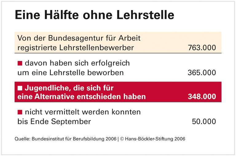 Knapp 50.000 Lehrstellen-Bewerber gelten als noch nicht vermittelt. Doch die Zahl derer, die keinen Platz gefunden haben, ist weit größer: Fast 350.000 absolvieren Praktika, jobben oder gehen wieder zur Schule.