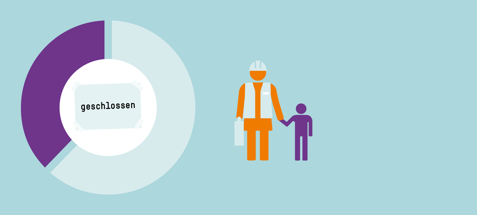 Von den 469 befragten Eltern, deren Kinder eine Kita oder eine Tagesmutter oder einen Tagesvater besuchen, gaben 38 Prozent an, dass die Betreuung in den drei Monaten vor der Befragung zeitweise wegen Personalmangels komplett ausgefallen ist. Bei 47 Prozent kam es aus diesem Grund zu Verkürzungen der vereinbarten Betreuungszeiten. Da ein Teil der Eltern sowohl mit Kürzungen als auch mit Schließungen zurechtkommen musste, summiert sich die Quote der Betroffenen insgesamt auf gut 57 Prozent.