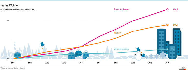 Wohnen droht für viele Menschen in Deutschland zum Luxus zu werden: Die Mieten in den Ballungszentren seien in den vergangenen Jahren „förmlich explodiert“, erklärt Dirk Löhr. Wer nicht zu den Großverdienern gehört, habe oft wenig Aussicht auf eine bezahlbare Bleibe. Der Wirtschaftswissenschaftler von der Hochschule Trier hat sich in einer von der Hans-Böckler-Stiftung geförderten Studie mit den Ursachen dieser Entwicklung auseinandergesetzt und analysiert, wie die Politik gegensteuern kann. Für ein geeignetes Instrument hält er unter anderem die „neue Wohnungsgemeinnützigkeit“. Den Kommunen empfiehlt er, Bodenvorräte anzulegen und das Erbbaurecht intelligent einzusetzen.