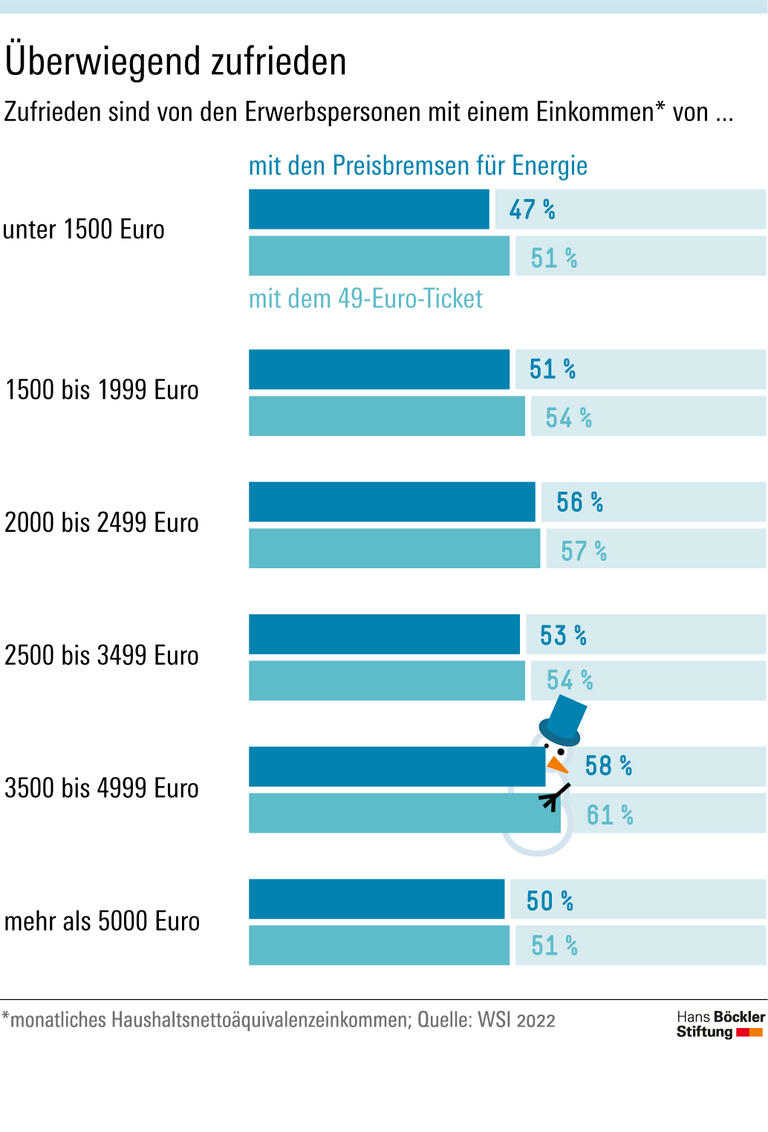 Energiepreisbremse und 49 Euro-Ticket kommen gut an. Trotzdem sinkt das Vertrauen in die Regierung. Vor allem Menschen mit niedrigeren Einkommen fühlen sich stark belastet.