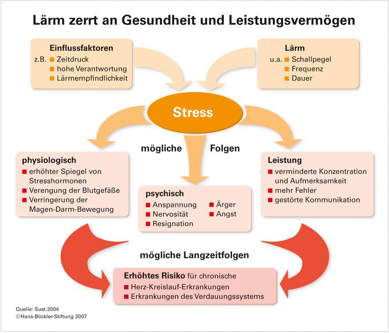 Die Folge: mehr Fehler oder zusätzliche Belastung durch höheren Konzentrationsaufwand. Die Dezibel-Empfehlungen der Arbeitsstättenverordnung für die Lautstärke am Arbeitsplatz sind für moderne Büroarbeitsplätze zu hoch und müssen angepasst werden, schreibt die Arbeitspsychologin Charlotte Sust: "Zur Belastung werden zunehmend auch niedrige Lärmpegel, weil die Tätigkeiten an Büroarbeitsplätzen komplexer und damit störanfälliger werden." Im Büro würden immer weniger Routinetätigkeiten ausgeübt. Zunehmend mehr Aufgaben erforderten ein höheres Maß an Planung, Selbstständigkeit, Problemlösungsprozessen, Kreativität und Verantwortung.