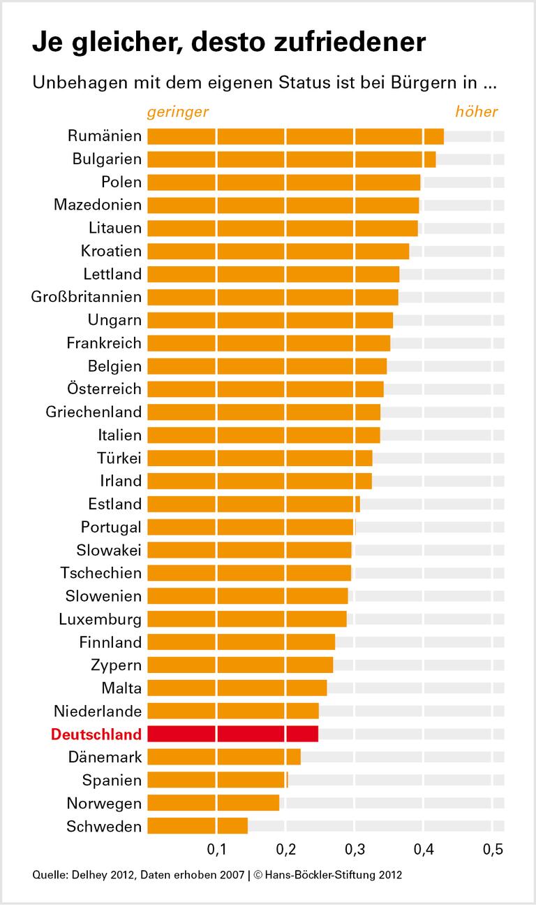 Jan Delhey: Gleichheit fühlt sich besser an – Statusunbehagen und Wohlbefinden in europäischen Gesellschaften (pdf), Informationsdienst Soziale Indikatoren 47, Januar 2012.