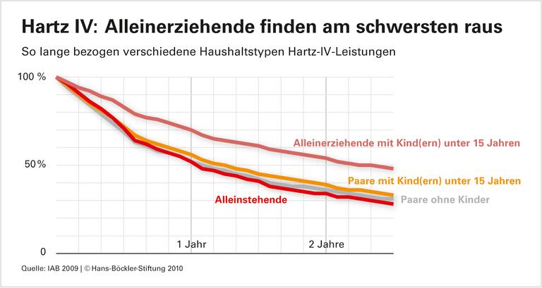 Allerdings treten mit Hartz IV die Charakteristika einer längerfristigen Entwicklung besonders deutlich zutage. Statuserhalt versus Grundsicherung - hier treffen zwei gegenläufige Gerechtigkeitskonzepte aufeinander. Das vorherige Berufsleben und die gewohnte soziale Stellung spielen für die Höhe der Unterstützung eine immer geringere Rolle. Mit der Reform gilt nun die "Logik der letzten sozialen Solidarität": Nach einer bestimmten Zeit ohne Beschäftigung werden alle gleich behandelt, das Arbeitslosengeld II knüpft nicht mehr an frühere Verdienste an. Der IAB-Forscher spricht von Entbiografisierung und Entdifferenzierung.