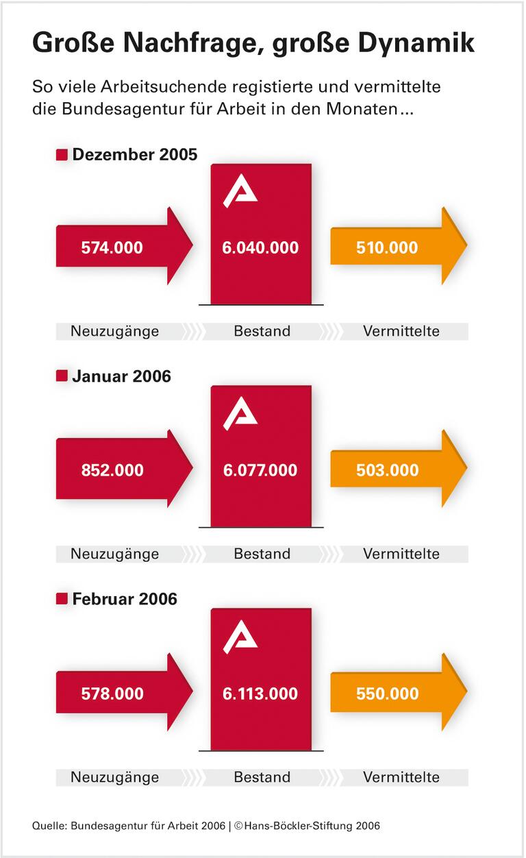 Die BA konzentriert daher ihre Qualifizierungs- und Vermittlungsangebote auf Arbeitsuchende, die zwar nicht aus eigener Kraft eine Stelle finden, aber noch vergleichsweise leicht zu vermitteln sind. Weit weniger Aufmerksamkeit bekommen die so genannten "Betreuungskunden" - jene Arbeitslose, die bei der Jobsuche erhebliche Hilfe benötigen. Deren Eingliederung ist kostspielig und damit "nicht rentabel". Volker Hielscher vom iso-Institut: "Faktisch werden Betreuungskunden, für die noch im Bericht der Hartz-Kommission die intensivste Unterstützung vorgesehen war, in Nicht-Betreuungskunden verwandelt." Ausgerechnet die Problemgruppe sei von "Leistungen der aktiven Arbeitsmarktförderungen weitgehend ausgeschlossen." Das Risiko der sich verfestigenden Arbeitslosigkeit steigt.