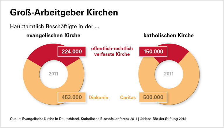 Wenn es um arbeitsrechtliche Fragen geht, berufen sich die Kirchen auf ihr Selbstverwaltungsrecht und die Glaubensfreiheit, schreibt der Wissenschaftler. Infolgedessen habe sich eine Art Nebenrechtsordnung entwickelt – mit Konsequenzen für zahlreiche Beschäftigte. Zusammengenommen sind die Kirchen der zweitgrößte Arbeitgeber nach dem Staat. Ihrem Leitbild zufolge sollen kirchliche Arbeitgeber und Beschäftigte partnerschaftlich zusammenwirken und Entscheidungen im Konsens treffen. Für die Tariffindung etwa ist eine paritätisch besetzte Kommission zuständig. Streiks würden diesem Konzept nach kirchlicher Lesart zuwiderlaufen: Durch sie drohe „Kampf und Konfrontation“.