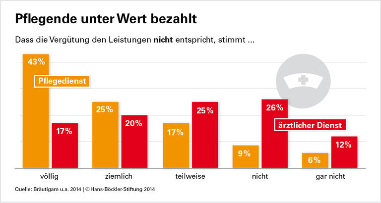 Zu wenig Zeit fürs Wesentliche. Im Arbeitsalltag erleben viele Beschäftigte aus allen Berufsgruppen nach wie vor permanente Zeitknappheit. Knapp 60 Prozent sagen, sie hätten nicht genug Zeit für ihre Arbeit, weitere 27 Prozent beantworten die Frage mit „teils-teils“. Mehr als die Hälfte der befragten Ärzte und Pflegekräfte kann zumindest mehrmals in der Woche nicht die vorgesehenen Pausen machen. Fast 83 Prozent aller Beschäftigten beobachten, dass auf ihrer Station trotz der Reorganisation wichtige Aufgaben vernachlässigt würden. Rund 60 Prozent der Pflegenden und rund die Hälfte der Mediziner geben an, dass sie oder ihre Kollegen nicht genug für die Information, Anleitung und Beratung von Kranken und deren Angehörigen tun können. Jeweils knapp die Hälfte der Befragten findet, dass die Ausbildung auf ihrer Station zu kurz komme. Ein Drittel der Pflegenden und etwa jeder fünfte Mediziner spricht von Defiziten bei der Dokumentation.