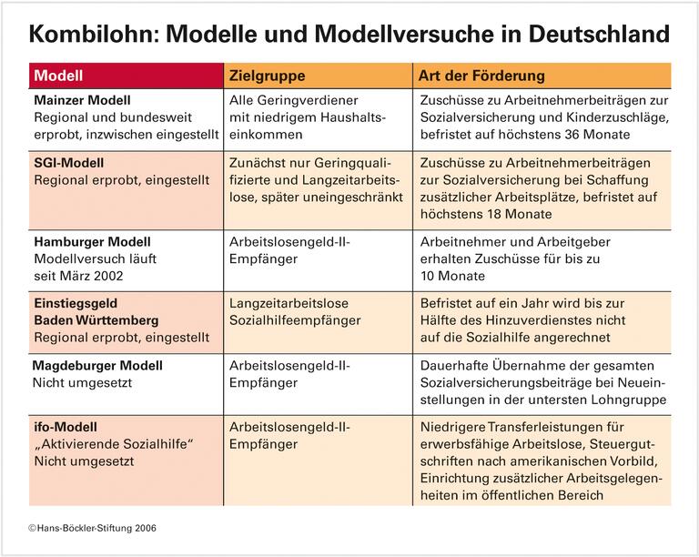 Unabhängig von der Intention, mit der Kombilöhne gefordert werden, können - trotz zahlreicher abgeschlossener Modellversuche - viele Fragen bisher nicht ausreichend beantwortet werden.