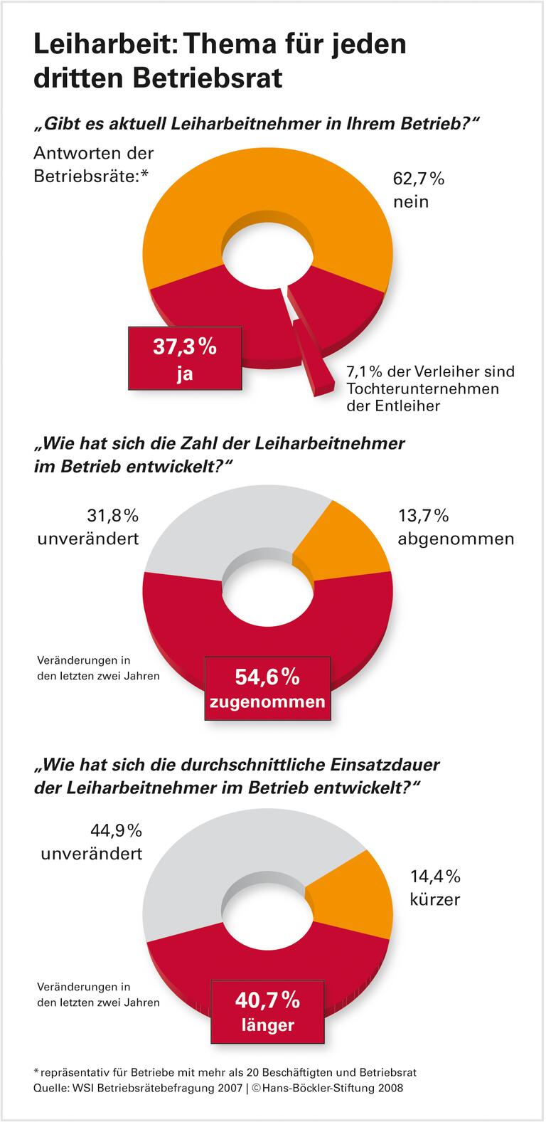 Indizien für einen Strukturwandel in etlichen Unternehmen erkennt hinter den Zahlen Hartmut Seifert, Leiter des WSI. Zwar sei die Bewältigung von Auftragsspitzen vielerorts nach wie vor der wichtigste Grund, Zeitarbeiter zu entleihen. "Doch es ist unübersehbar, dass sich die Funktion von Leiharbeit wandelt. Teilweise ersetzt sie feste Beschäftigung, und manche Unternehmen setzen Leiharbeiter als flexible Quasi-Stammbelegschaft ein." Ein gutes Viertel der Betriebsräte von Entleihbetrieben berichtet, dass während der vergangenen zwei Jahre Leiharbeiter regulär Beschäftigte ersetzt hätten.