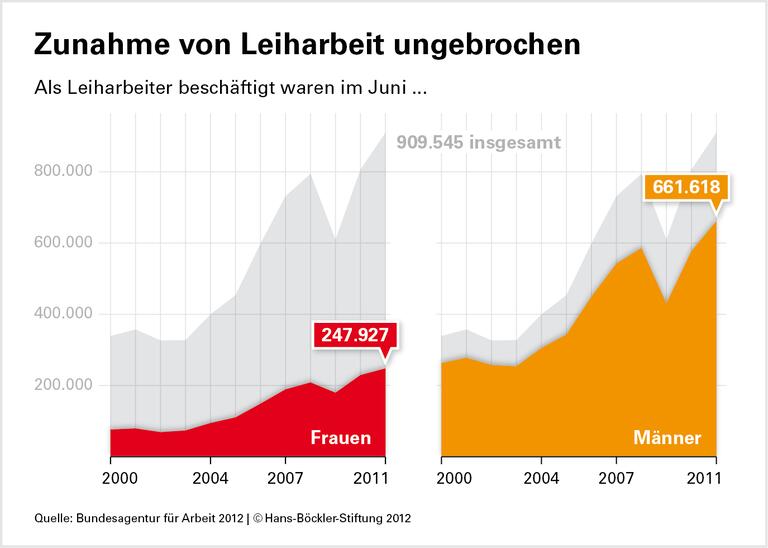 Seit Dezember 2011 ist das „Gesetz zur Regelung der Arbeitnehmerüberlassung“ um einen wichtigen Passus ergänzt worden: „Die Überlassung von Arbeitnehmern an Entleiher erfolgt vorübergehend“, heißt es nun. Seitdem beschäftigen sich deutsche Arbeitsgerichte mit der Frage, wie „vorübergehend“ zu definieren ist. Arbeitnehmervertreter setzen sich dafür ein, dass Leiharbeiter von dem Unternehmen eingestellt werden, an das sie für längere Zeit entliehen werden.