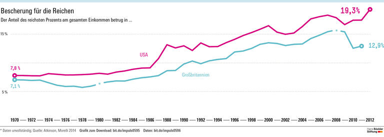 Steuersystem reformieren: Großbritannien sollte zu einer stärker progressiven Besteuerung zurückkehren und einen Spitzensteuersatz von 65 Prozent erheben. Auch anderen Ländern empfiehlt Atkinson, vor allem auf direkte Steuern auf Einkommen und Vermögen zu setzen. Dabei sollte es Rabatte für die Einkommenssteuer aus Erwerbsarbeit geben. In den unteren Einkommensgruppen würde Arbeit in seinem Modell mit 20 Prozent Nachlass deutlich geringer besteuert als Kapitaleinkommen. Mit steigendem Erwerbseinkommen würde der Rabatt nach und nach auf Null sinken. Die Erbschaftssteuer will Atkinson durch eine lebenslange Kapitalzugangssteuer ersetzen. Schenkungen und Erbschaften würden im Lauf des Lebens addiert. Wenn der Freibetrag von beispielsweise 100.000 Euro erreicht ist, fallen Steuern an. Die erste Erbschaft von 50.000 Euro wäre demnach steuerfrei. Bei der zweiten Erbschaft von 80.000 Euro würden dann 30.000 Euro besteuert. Eine dritte Erbschaft im Laufe des Lebens müsste dann voll versteuert werden. Atkinson erhofft sich vom dem Modell nicht nur mehr Steuereinnahmen, sondern auch eine breitere Streuung von Vermögen. Schließlich würde so ein Anreiz geschaffen, Vermögen vor allem an jene zu vererben und zu verschenken, die bislang in ihrem Leben noch nichts oder wenig bekommen haben. Die Grundsteuer sollte sich nach den aktuellen Immobilienwerten richten und ebenfalls progressiv gestaltet werden. Zudem sollte die Regierung prüfen, ob die Einführung einer Vermögenssteuer sinnvoll und politisch durchsetzbar wäre.