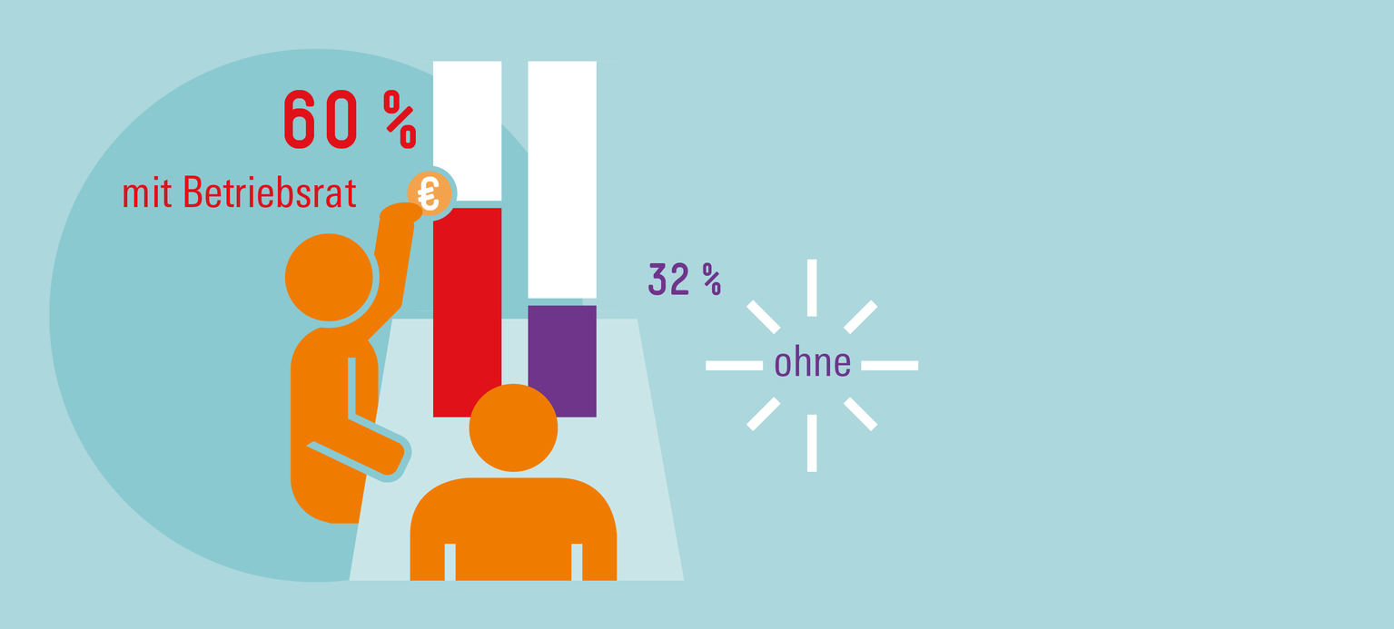 Insgesamt erhielten im Juni 46 Prozent der Befragten in Kurzarbeit eine Aufstockung. Darunter dürften einige gewesen sein, die vom höheren gesetzlichen Kurzarbeitergeld ab dem vierten Monat profitierten. Eine deutlich größere Rolle spielten nach Puschs und Seiferts Analyse aber Tarifverträge beziehungsweise Betriebsräte. So erhielten 58 Prozent der Beschäftigten mit Tarifvertrag eine Aufstockung. Ohne Tarif waren es nur 34 Prozent. In mitbestimmten Betrieben lag der Anteil der Kurzarbeitenden mit Aufstockung bei 60 Prozent, ohne betriebliche Mitbestimmung bei lediglich 32 Prozent. In Betrieben mit Tarifvertrag oder Betriebsrat gab es also fast doppelt so häufig eine Aufstockung wie in anderen Betrieben.