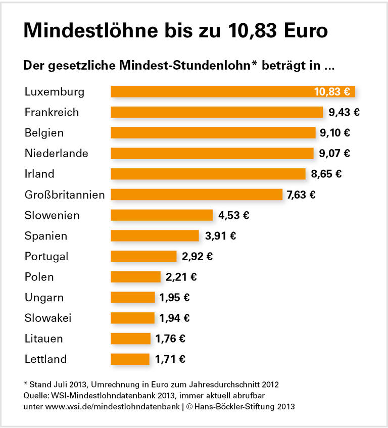 Um die Auswirkungen von Mindestlöhnen auf die Lohnverteilung zu untersuchen, haben Gerhard Bosch und Claudia Weinkopf die Situation in 14 EU-Staaten verglichen. Die meisten Mindestlöhne liegen laut ihrer Analyse unterhalb der Niedriglohnschwelle und haben daher wenig Einfluss auf den Anteil der Geringverdiener. Nur der französische Mindestlohn sei so hoch, dass er einen eigenständigen Beitrag zur Begrenzung des Niedriglohnsektors leiste. In allen Staaten könnten gesetzliche Untergrenzen aber das Ausfransen der Verdienste nach unten verhindern, also die Lohnungleichheit innerhalb des Niedriglohnsektors verringern.