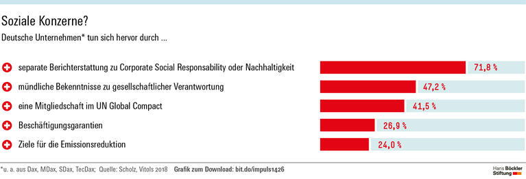 Die Sozialwissenschaftler haben Daten von 96 deutschen Unternehmen aus den Jahren 2006 bis 2014 ausgewertet. Mithilfe des von ihnen entwickelten Mitbestimmungsindex MB-ix haben sie erhoben, wie stark Mitbestimmungsrechte von Beschäftigten im Aufsichtsrat institutionell verankert sind. Zudem wurden verschiedene Dimensionen der CSR-Politik erfasst. Dabei unterscheiden Scholz und Vitols zwischen symbolischen Praktiken, die einen eher „zeremoniellen“ Charakter haben und vor allem auf öffentliche Sichtbarkeit abzielen, und substanziellen Maßnahmen, die auf der operativen Ebene zu messbaren Änderungen führen. Zur ersten Kategorie gehören mündliche Bekenntnisse zu gesellschaftlicher Verantwortung, die Manager in der Öffentlichkeit ablegen, und eine bloße Mitgliedschaft im UN Global Compact, die mit wenig konkreten Verpflichtungen einhergeht. Die zweite Kategorie umfasst spezifische Ziele für die Emissionsreduktion, separate Berichterstattung zu CSR oder Nachhaltigkeit und Beschäftigungsgarantien.