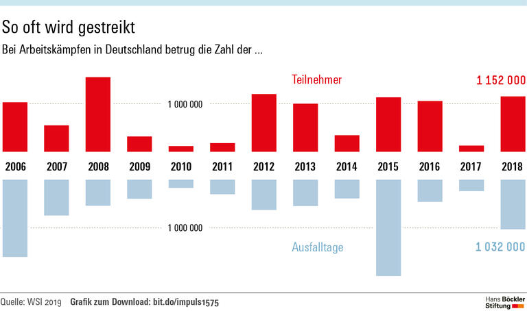 Ziel eines Streiks ist es, Betriebe lahmzulegen und so die Arbeitgeber unter Druck zu setzen. Die versuchen das in der Regel zu vereiteln, indem sie beispielsweise die Beschäftigten, die nicht am Ausstand teilnehmen, zu Mehrarbeit verdonnern oder Ausfälle durch Versetzungen wettmachen. Zum Teil sind solche Maßnahmen allerdings mitbestimmungspflichtig. Das heißt: Der Betriebsrat hätte die Möglichkeit, die Umsetzung zumindest zu verzögern. Weil sie sich dadurch in der Tarifauseinandersetzung benachteiligt fühlen, haben Unternehmen regelmäßig vor Arbeitsgerichten geklagt – und häufig Erfolg gehabt. Der Rechtswissenschaftler Daniel Klocke von der EBS-Universität Wiesbaden hat sich in einem Gutachten für das HSI mit den Argumenten der Arbeitsrichter auseinandergesetzt. Seiner Analyse zufolge greifen sie oft zu kurz. Mitbestimmungsrechte während eines Arbeitskampfs einzuschränken, sei nur unter ganz bestimmten Voraussetzungen geboten.