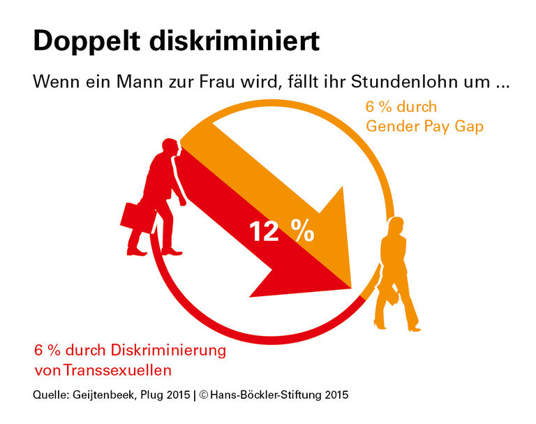 Geschlechtsspezifische Lohndiskriminierung nachzuweisen, ist methodisch kompliziert: Unterschiede im Lohnniveau sind nur dann aussagekräftig, wenn Beschäftigte ansonsten in jeder ökonomisch relevanten Hinsicht übereinstimmen. Für die Arbeitsmarktforschung könnten Transsexuelle daher höchst aufschlussreich sein, so Lydia Geijtenbeek und Erik Plug. Denn wenn Menschen ihr Geschlecht wechseln, bleiben ihre übrigen Eigenschaften davon unberührt. Die Ökonomen von der Universität Amsterdam haben Daten der niederländischen Verwaltung ausgewertet und konnten so die Erwerbsbiografien von 188 Bürgern rekonstruieren, die zwischen 2006 und 2012 ein neues Geschlecht registrieren ließen.