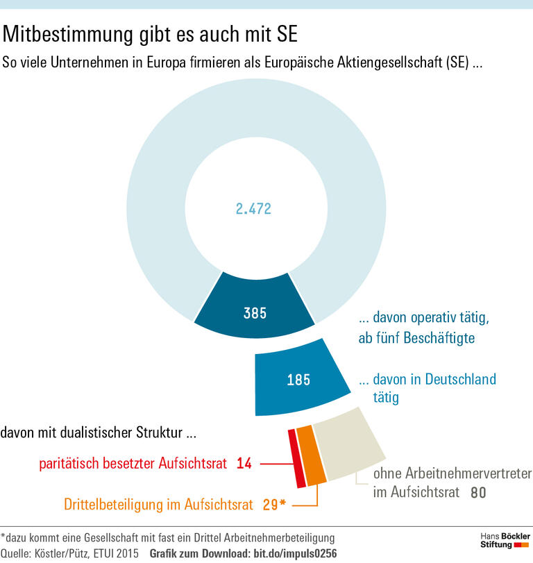 Roland Köstler, Lasse Pütz: SE-Datenblatt: Fakten zur Europäische Aktiengesellschaft (pdf), Hans-Böckler-Stiftung, Dezember 2015