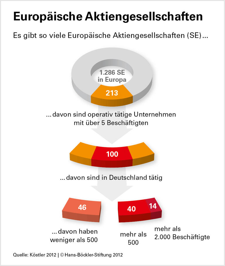 Seit sieben Jahren können Unternehmen die Europäische Aktiengesellschaft (Societas Europaea, kurz SE) als Rechtsform wählen. Inzwischen gibt es nach einer aktuellen Analyse des Unternehmensrechtlers Roland Köstler 100 operativ tätige Unternehmen mit mehr als fünf Beschäftigten in Deutschland, die als SE firmieren. Der Mitbestimmungsexperte der Hans-Böckler-Stiftung hat die Entwicklung der SE-Landschaft in den vergangenen Jahren beobachtet – vor allem mit Blick auf die Unternehmensmitbestimmung. Seine Analyse: Das prägende Merkmal der Verhandlungen über die Mitbestimmung im neuen Unternehmen war stets das Vorher-Nachher-Prinzip. „Hatten Unternehmen vorher Arbeitnehmer im Aufsichtsrat – sei es Parität oder Drittelbeteiligung – so blieb es dabei.“ Das bedeutet aber auch: Kleinere Unternehmen, die bisher gar keine Arbeitnehmervertreter im Aufsichtsrat oder nur eine Drittelbeteiligung hatten, können sich mithilfe der SE dauerhaft der 1976er-Mitbestimmung entziehen – auch wenn sie über die im Mitbestimmungsgesetz festgelegte Schwelle von 2.000 Arbeitnehmern hinauswachsen. „Ist man einmal eine SE“, so Köstler, „wird der reine Personalaufbau danach nicht mehr als ein Fall für neue Verhandlungen angesehen“ – ein Punkt, den der Jurist bereits bei der jüngsten Revision des SE-Rechts vor zwei Jahren kritisiert hatte.