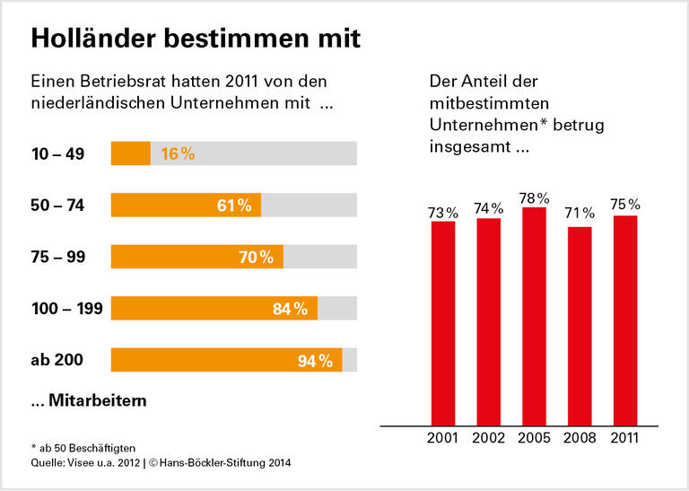 Dass Mitbestimmung auch ein Wettbewerbsvorteil sein kann, ist bekannt: Diverse Untersuchungen seien zu dem Ergebnis gekommen, dass Firmen mit Betriebsräten produktiver und profitabler sind, stellen Jan Ekke Wigboldus, Yolanda Grift, Annette van den Berg und Jan Kees Looise fest. Wie genau Arbeitnehmervertretungen zum wirtschaftlichen Erfolg von Unternehmen beitragen und welche Bedingungen erfüllt sein müssen, sei allerdings zum Teil noch unklar. Die Wirtschaftswissenschaftler von den Universitäten Twente und Utrecht haben versucht, mit einer Studie über Betriebsräte in den Niederlanden mehr Licht in diese Zusammenhänge zu bringen. Nach ihrer Einschätzung sind die Mitbestimmungsrechte dort ähnlich stark ausgeprägt wie in Deutschland. Der Analyse zufolge beruht der positive Einfluss von Betriebsräten darauf, dass sie den Informationsfluss zwischen Belegschaft und Management verbessern, Vertrauen schaffen und Fehlentscheidungen korrigieren. Eine wichtige Voraussetzung: Bei Betriebsratswahlen müssen ausreichend Kandidaten zur Verfügung stehen.