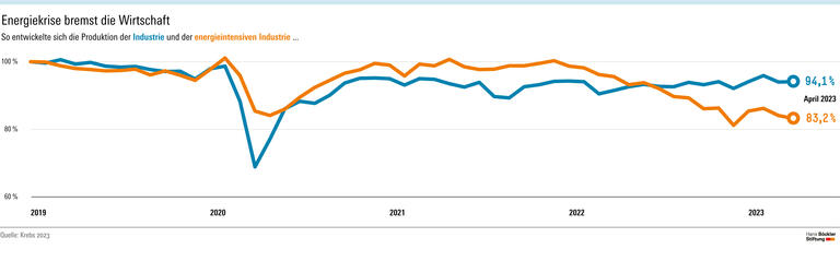 „Die Bundesregierung muss jetzt die wirtschaftspolitischen Weichen stellen, um eine langjährige Stagnationsphase zu vermeiden. Dazu müssen die wirtschaftlichen Folgen der Energiekrise abgefedert und die transformativen Investitionen gestärkt werden“, schreibt Krebs. Seinen Berechnungen zufolge beträgt der kurzfristige Produktionsverlust durch den Anstieg der Energiepreise bislang rund vier Prozent des Bruttoinlandsprodukts. Zudem sind die Reallöhne stärker gefallen als in jeder anderen Krise der deutschen Nachkriegsgeschichte. Darüber hinaus drohen langfristige wirtschaftliche Schäden, die sich bis Ende 2024 auf rund zehn Prozent des Bruttoinlandsprodukts oder 390 Milliarden Euro belaufen könnten.