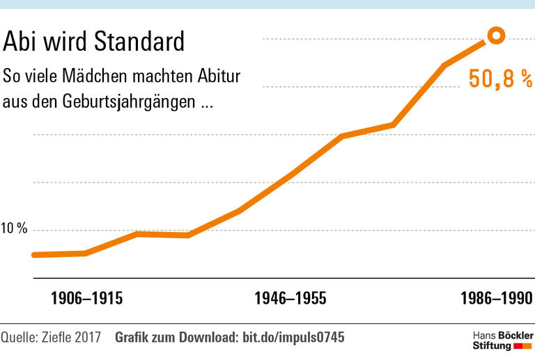 Mädchen profitieren noch heute von der Bildungsexpansion der Nachkriegszeit. Sie haben höher qualifizierte Mütter als jede Generation zuvor und orientieren sich an ihnen. Zu diesem Ergebnis kommt die Frankfurter Soziologin Andrea Ziefle, die biografische Daten von mehr als 40.000 Frauen der Jahrgänge 1892 bis 1990 statistisch ausgewertet hat. Es zeigt sich, welche enormen Fortschritte Frauen in Sachen Bildung gemacht haben. Vor allem wird aber deutlich, worin die Ursachen liegen.