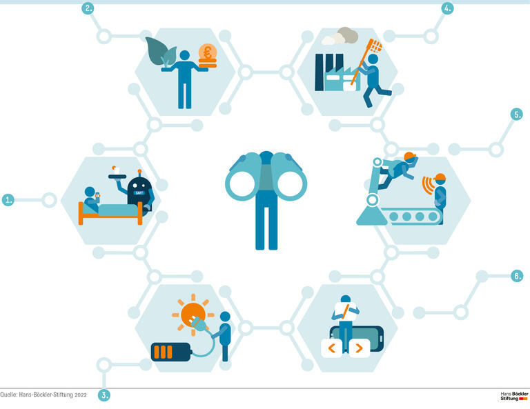 Mit diesen Fragen hat sich ein Team um Norbert Malanowski vom VDI Technologiezentrum in Düsseldorf beschäftigt. In dem von der Hans-Böckler-Stiftung geförderten Projekt „Monitoring Innovations- und Technologiepolitik“ haben die Wissenschaftlerinnen und Wissenschaftler 15 bedeutsame Innovationen identifiziert. Anschließend haben sie diese Trends gemeinsam mit Fachleuten aus Gewerkschaften, Wirtschaft und Wissenschaft bewertet. Die Analyse soll insbesondere Beteiligten auf Arbeitnehmerseite dazu dienen, Innovationen frühzeitig zu erkennen und im Sinne der Beschäftigten zu gestalten.