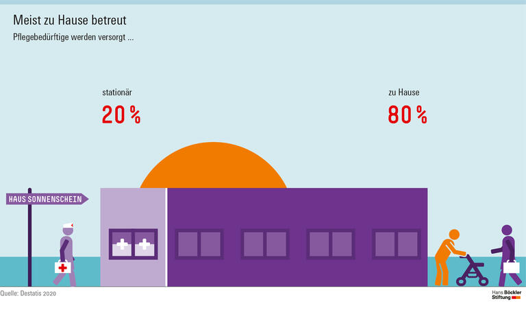 In der Altenpflege arbeiten vor allem Frauen, mehrheitlich in Teilzeit. Mehr als zehn Prozent der in Arbeitsmarktstatistiken erfassten Beschäftigten sind Migrantinnen oder Migranten. Der Anteil der Hilfskräfte – im Verhältnis zu den Fachkräften – ist hoch, die Bezahlung eher schlecht. Zwar sind die Entgelte in der Altenpflege in den vergangenen Jahren überdurchschnittlich gestiegen. Dennoch kamen vollzeitbeschäftigte Fachkräfte 2020 im Schnitt gerade einmal auf 3174 Euro brutto, fast 500 Euro weniger als in der Krankenpflege, wo deutlich mehr Beschäftigte nach Tarifvertrag bezahlt werden.