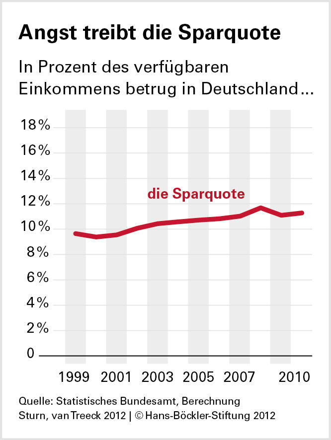 Die Deutschen hingegen verschuldeten sich nicht, um trotz stagnierender Einkommen ihren Lebensstandard zu halten. Im Gegenteil: Sie sparten einen größeren Teil ihres Einkommens. Diese typisch deutsche Reaktion ist auch dem typisch deutschen institutionellen Rahmen geschuldet, stellen die beiden Wissenschaftler fest: