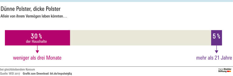Jeder dritte Haushalt hat so wenig Vermögen, dass er sich ohne laufendes Einkommen nur kurzfristig über Wasser halten könnte. Andere haben Rücklagen für Jahre oder Jahrzehnte.