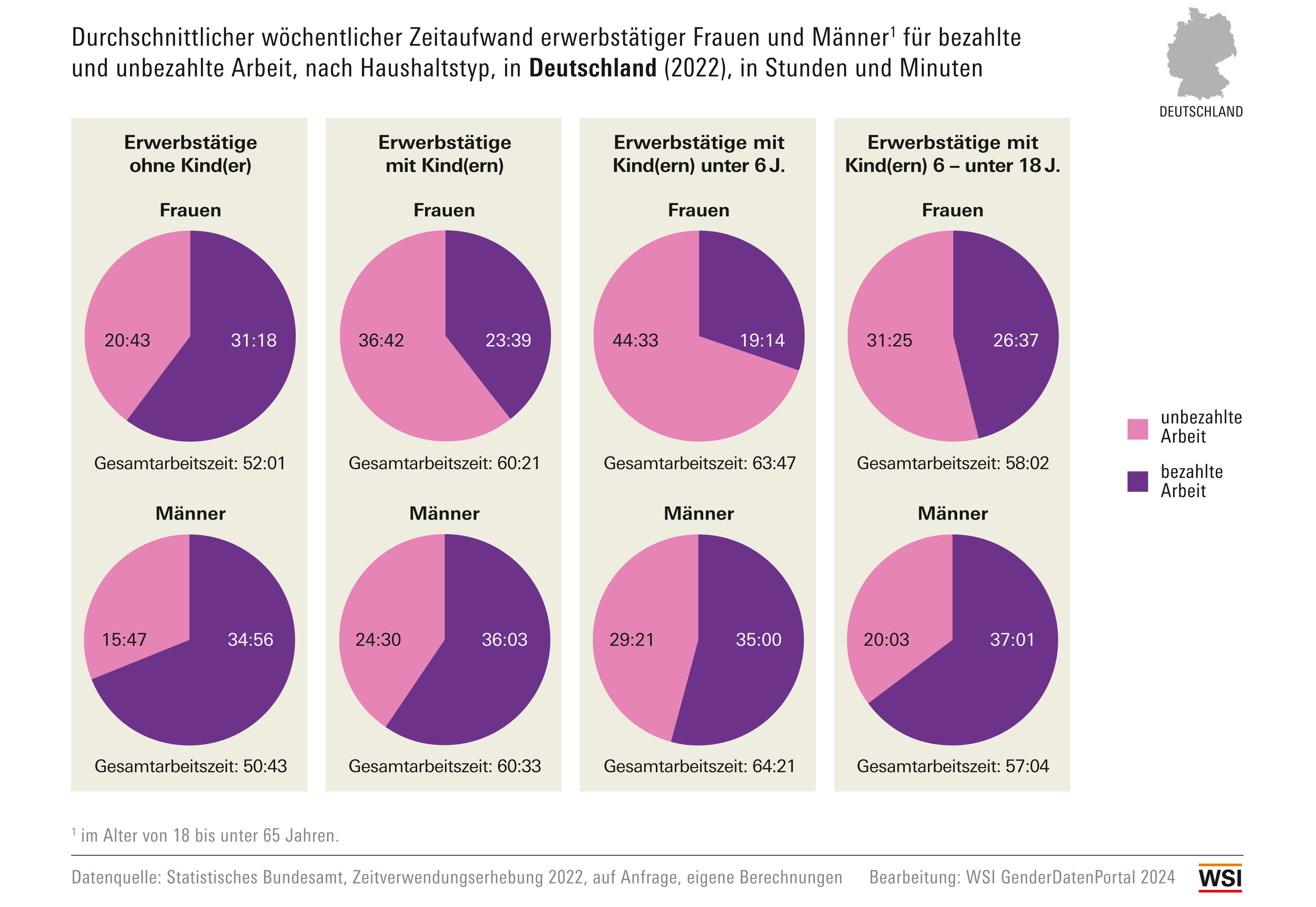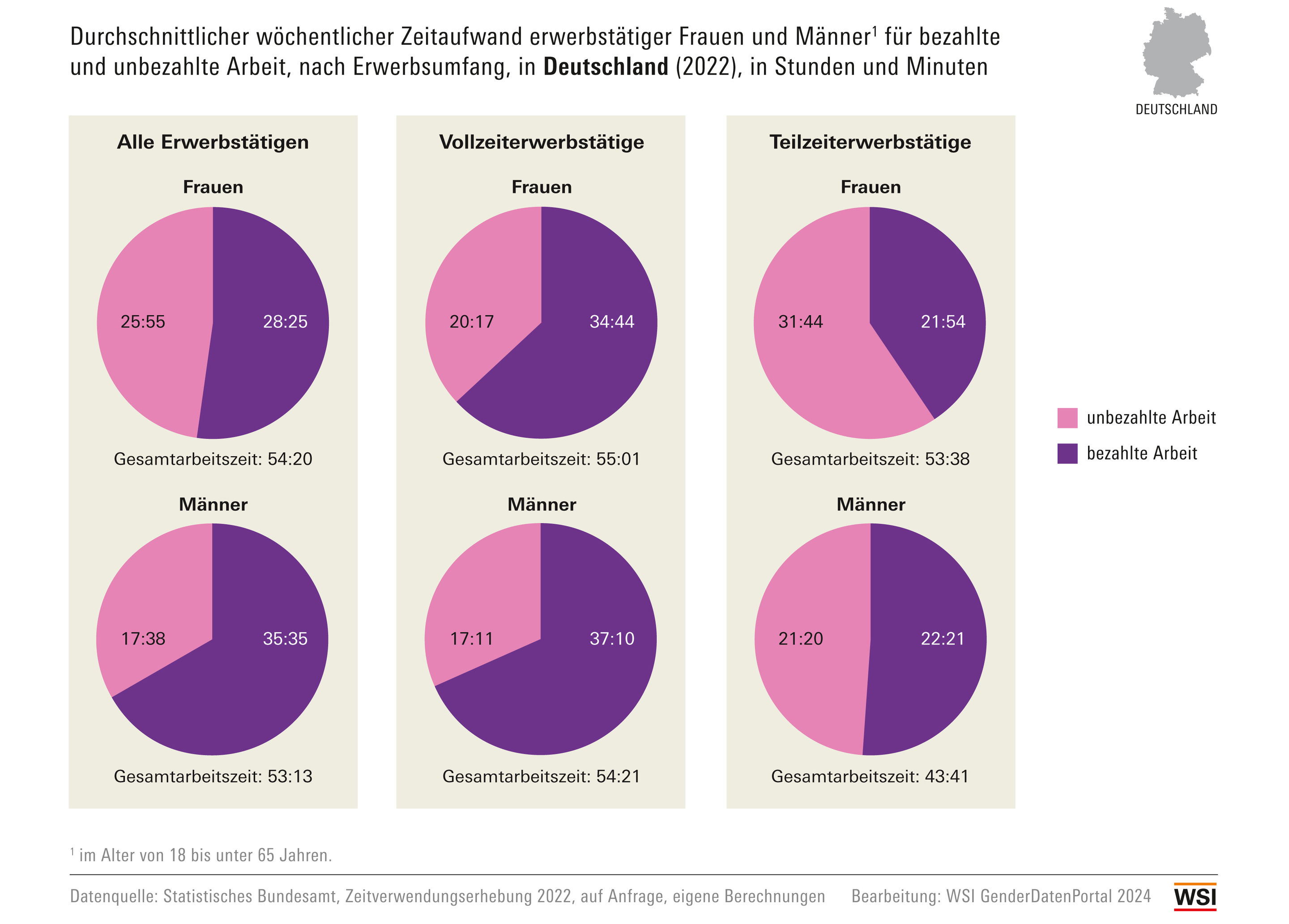 WSI GenderDatenPortal: Sorgearbeit: Zeitaufwand für bezahlte und unbezahlte Arbeit 2022