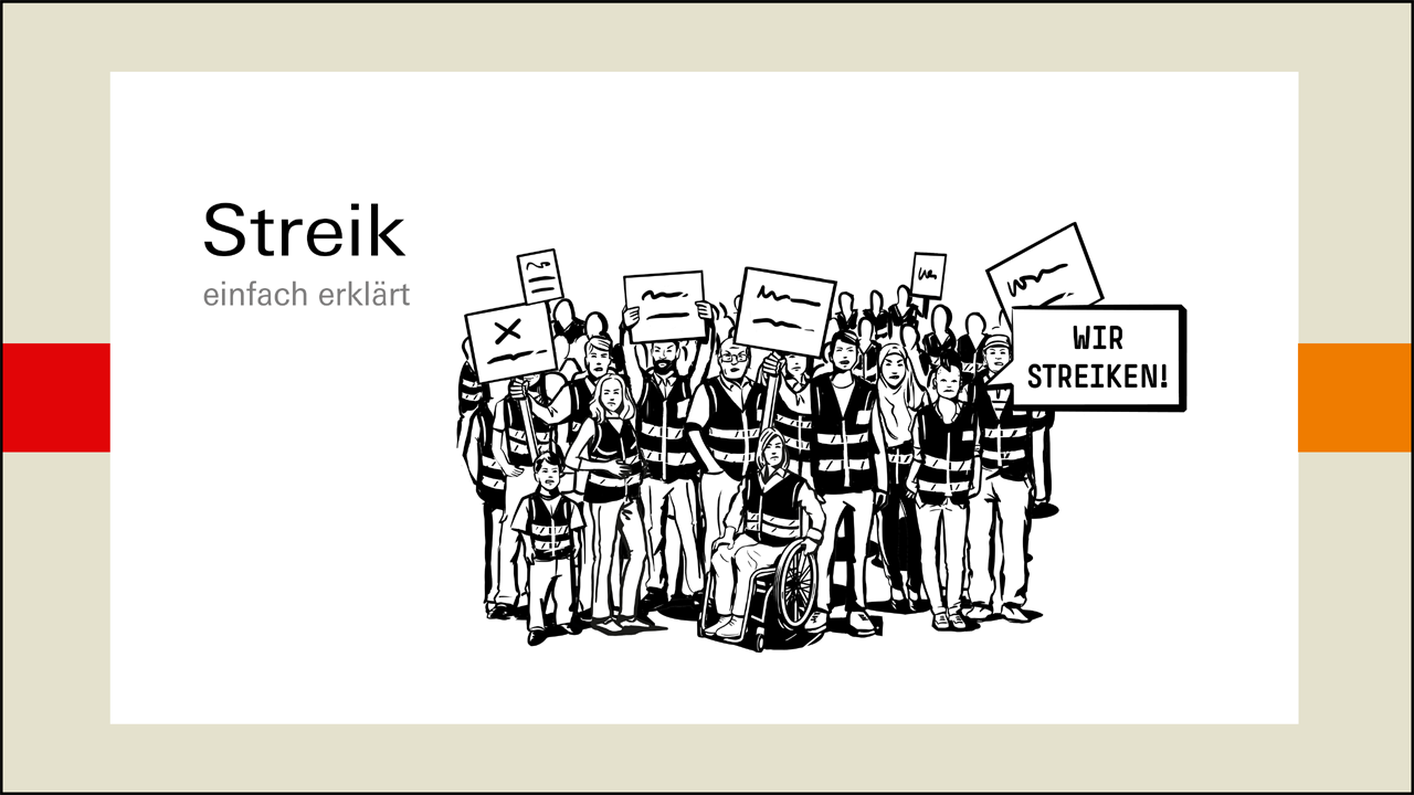 In drei Minuten erklärt der Film, wann es zum Streik kommt, wie er abläuft und wann er endet. Außerdem Begriffe wie Urabstimmung, Aussperrung und Streikgeld.