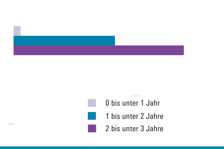 Zwei Drittel der Kinder im Alter von 2 bis unter 3 Jahren tagsüber in einer Tageseinrichtung oder von einer Tagespflegeperson betreut. Unter den jüngeren Kindern liegt der Anteil deutlich niedriger.