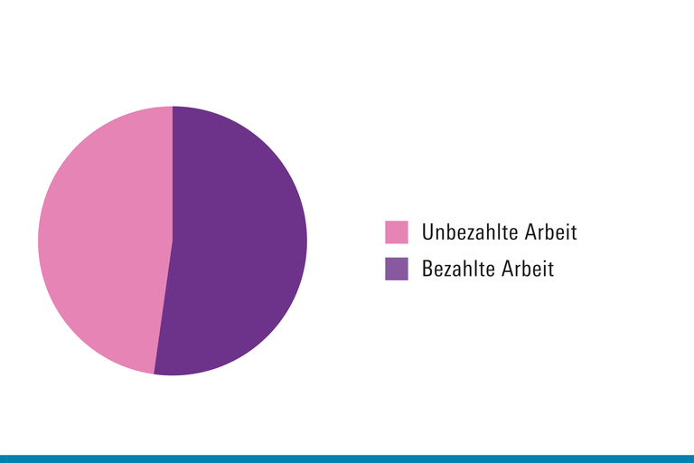 Erwerbstätige Frauen haben 2022 mit gut 54 Stunden eine etwas höhere Gesamtarbeitszeit in der Woche als Männer mit 53 Stunden. Dabei leisten Frauen mehr unbezahlte Arbeit als Männer, Frauen mit Kind(ern) arbeiten sogar überwiegend unbezahlt.