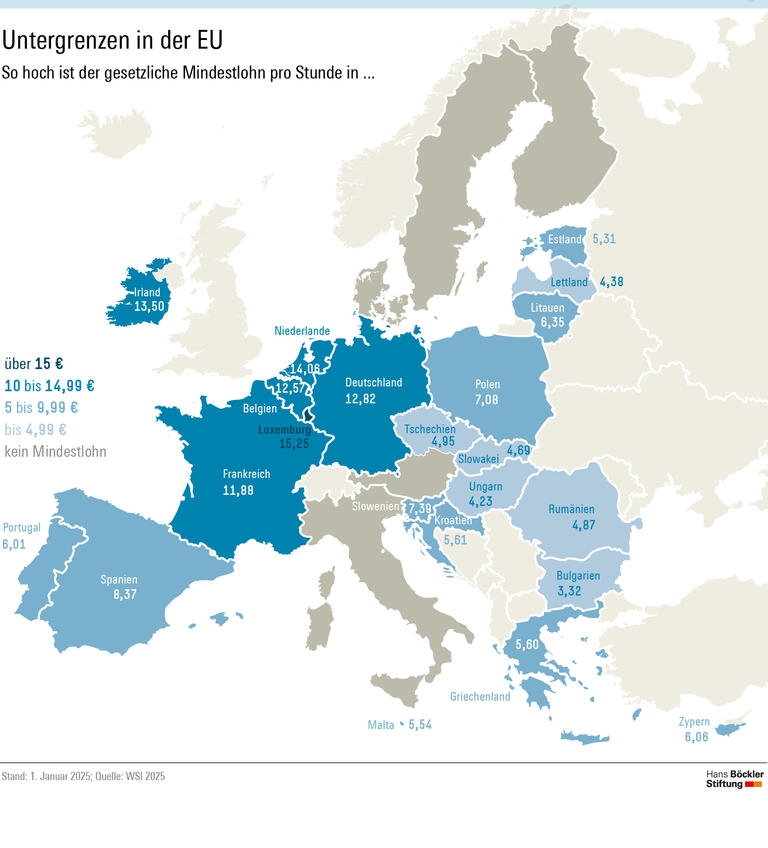 : Untergrenzen in der EU Mindestlohn Europäisches und internationales Arbeits- und Sozialrecht Lohn-/ Tarifpolitik gemerkt merken teilen auf Facebook teilen auf Bluesky teilen auf Mastodon teilen auf LinkedIn teilen per E-Mail teilen