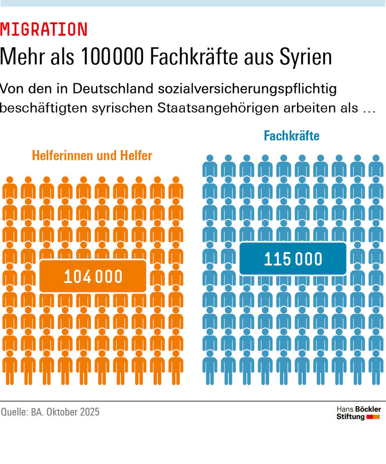 : Mehr als 100 000 Fachkräfte aus Syrien Armut / Reichtum Arbeitsmarktpolitik Soziale Ungleichheit gemerkt merken teilen auf Facebook teilen auf Bluesky teilen auf Mastodon teilen auf LinkedIn teilen per E-Mail teilen