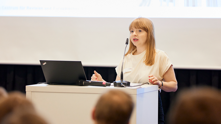 Antonia Seeland, Expertin für Sozialrecht und Europäisches Arbeitsrecht am HSI, hat in Forum 4 über die Teilhabe und Barrierefreiheit in der Arbeitswelt diskutiert.
