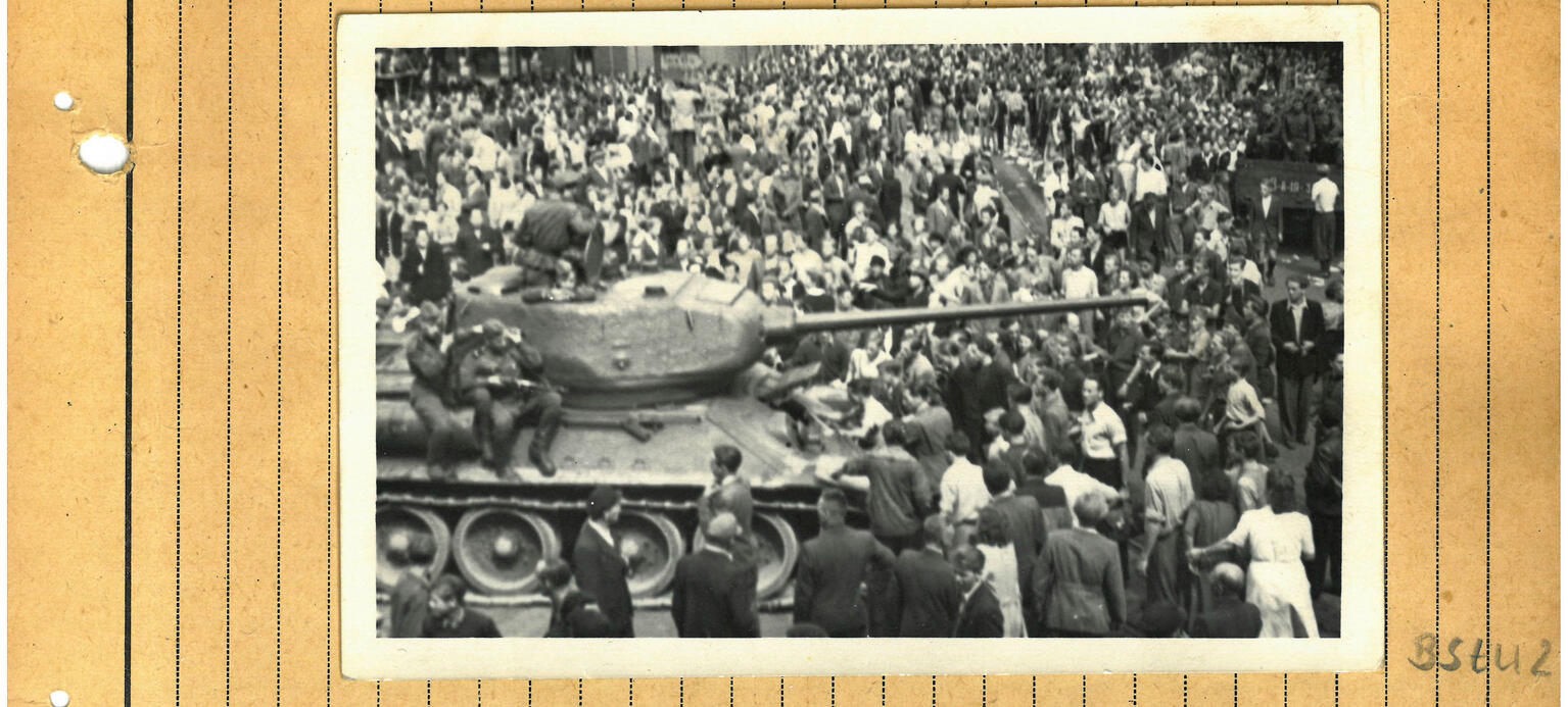 Die Fotos in der Stasi-Akte sind nicht für die Öffentlichkeit bestimmt. Aufgenommen während des Aufstandes am 17. Juni 1953 von einem jungen Mann, der an der „Arbeiter- und Bauernfakultät“ studiert, werden die Fotos und der Film erst im Jahr darauf vom Geheimdienst eingezogen. So will er weitere Teilnehmer identifizieren, damit diese, so die Geheimdienstsprache, nicht „negativ in Erscheinung treten“ können. Eines der Fotos zeigt den Jenaer Holzmarkt, an dem mehr als 30 000 Menschen gegen die kommunistische Diktatur protestieren. Das Haus der SED-Kreisleitung und auch die Stasi-Zentrale sind gestürmt worden. Am frühen Nachmittag rollt der erste Sowjetpanzer auf den Platz. Anfangs kommen die Soldaten nur langsam voran, überall gibt es Sitzblockaden. Straßenbahnwagen werden aus den Schienen gehoben und als Hindernisse genutzt. Vergebens. Die T-34-Kampfpanzer walzen über alles hinweg und erreichen schließlich den zentralen Platz. Kurz danach fallen Warnschüsse, um die Menge auseinanderzutreiben. Um 17 Uhr wird der Ausnahmezustand über die Stadt verhängt. Die SED und Stasi-Akten verdrehen den Schrei nach Freiheit zum „Putschversuch faschistischer Agenten und Provokateure“.