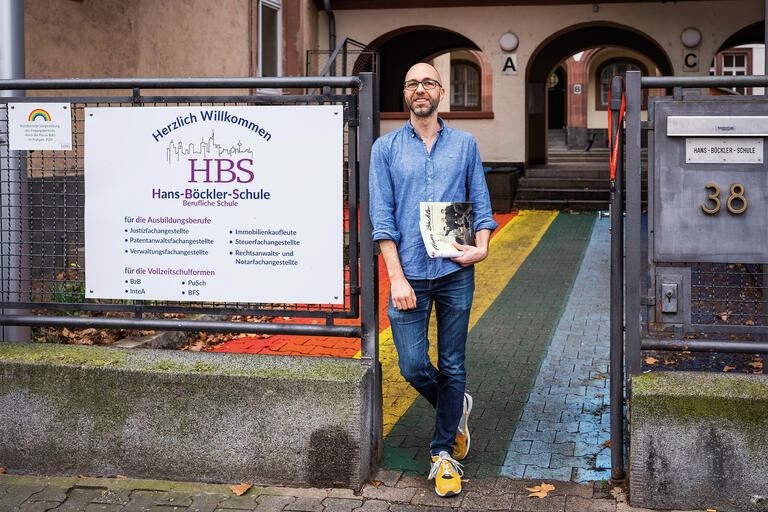 Die Schule in der Frankfurter Rohrbachstraße ist ein wuchtiger Altbau. Große Bäume säumen die Straße. Hier lernen Justizfachangestellte oder Immobilienkaufleute. Andreas Klein arbeitet hier als Lehrer.