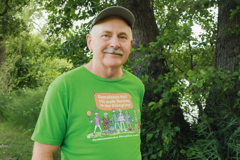 „Fast ein Drittel meines Tages beschäftige ich mich mit Zahlen. Mathe war im Studium zwar nicht unbedingt meine Stärke, aber hier muss ich auch keine Ableitungen mehr machen. Mein erstes Treffen hatte ich heute Morgen mit der Buchhaltung. Da ging es natürlich um Zahlen. In der Pflege bewegen wir uns ständig auf diesem schmalen Grat zwischen Bezahlbarkeit und guten Arbeitsbedingungen. Das habe ich schon als Verdi-Betriebsrat in der Krankenpflege gelernt. Aus diesem Grund habe ich mich auch entschlossen, zu studieren. Wenn jemand darüber entscheidet, wo Geld hinfließt und wo nicht, dann sollte das jemand sein, der weiß, was diese Zahlen bedeuten.