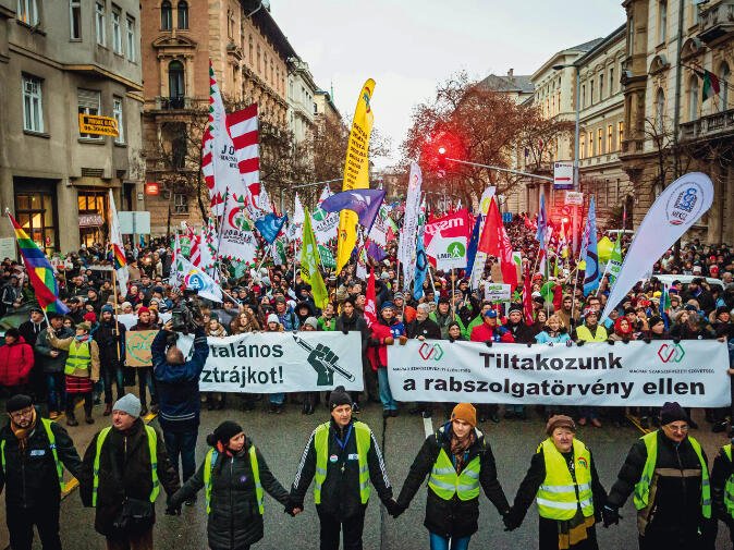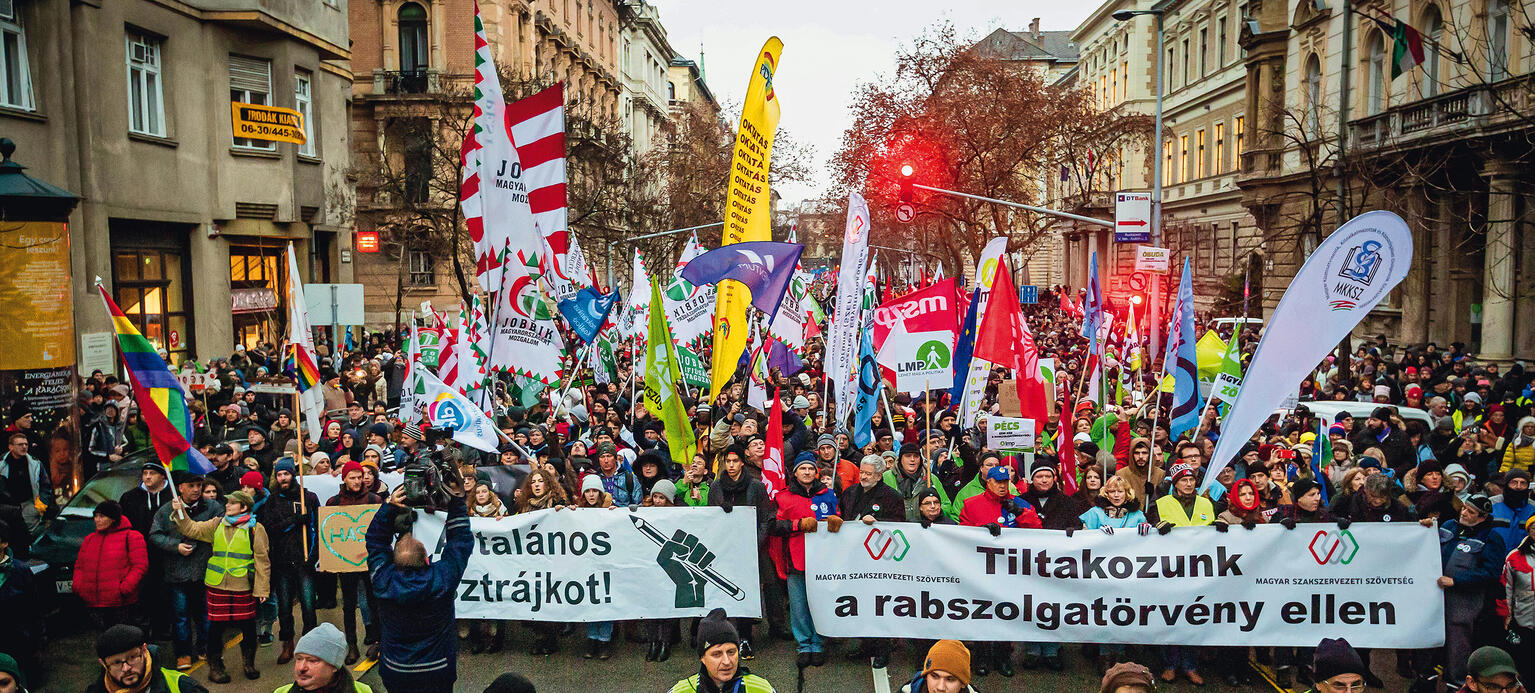Im Gegenteil: Ende vergangenen Jahres wurde trotz heftiger Proteste ein neues Gesetz verabschiedet, das die Anzahl der erlaubten Überstunden von 250 auf 400 im Jahr erhöht. Das entspricht täglich fast zwei Überstunden, die die Arbeitgeber nunmehr verlangen und erst nach drei Jahren kompensieren oder bezahlen können. Zu Recht wird diese Novelle in regierungskritischen Kreisen „Sklavengesetz“ genannt. Wochenlang demonstrierten bei Minustemperaturen auf dem großen Platz vor dem Parlament in Budapest zehntausende Mitglieder diverser Gewerkschaften, Vertreter anderer Zivilgesellschaftsorganisationen und Oppositionsparteien sowie viele andere, vor allem junge Menschen. Für einen Augenblick schien diese große Mobilisierung endlich den lange erhofften Durchbruch mit sich gebracht zu haben und allen relevanten gesellschaftlichen und politischen Kräften dabei zu helfen, persönliche Konflikte und ideologische Unterschiede beiseitezulegen, um geschlossen gegen die Regierung auftreten zu können.