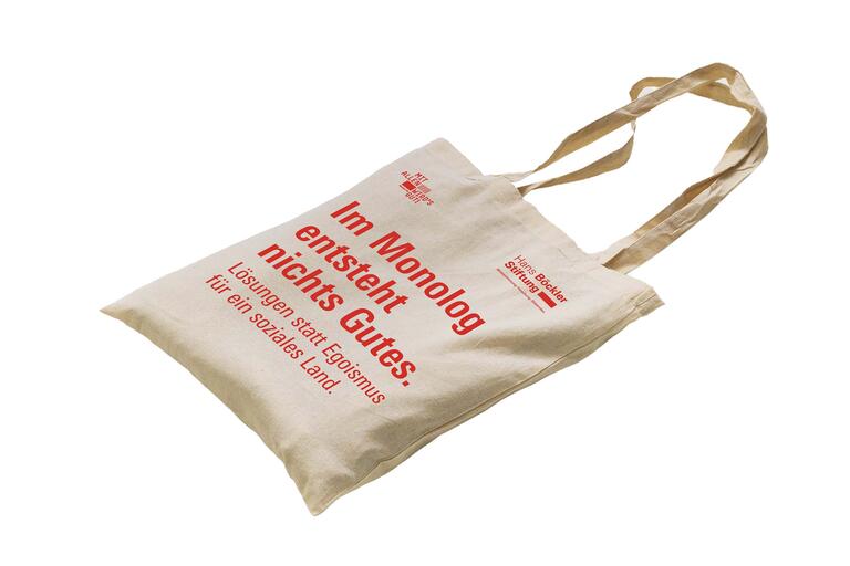 Böckler unterwegs: ein praktischer Beutel zum Beispiel für die wichtigsten Unterlagen zu Demokratie und Mitbestimmung.