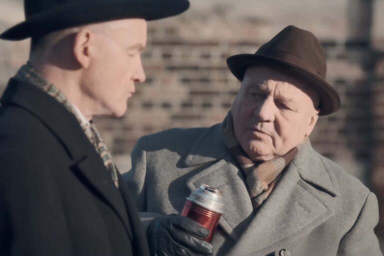 Böckler im Film: Konrad Adenauer (Werner Braunschädel, l.) und Hans Böckler (Reiner Wagner) einigten sich 1951 auf die paritätische Mitbestimmung für die Montanindustrie. Der Film „Hans Böckler – Ein Leben für Demokratie und Mitbestimmung“ skizziert die Verhandlungen.