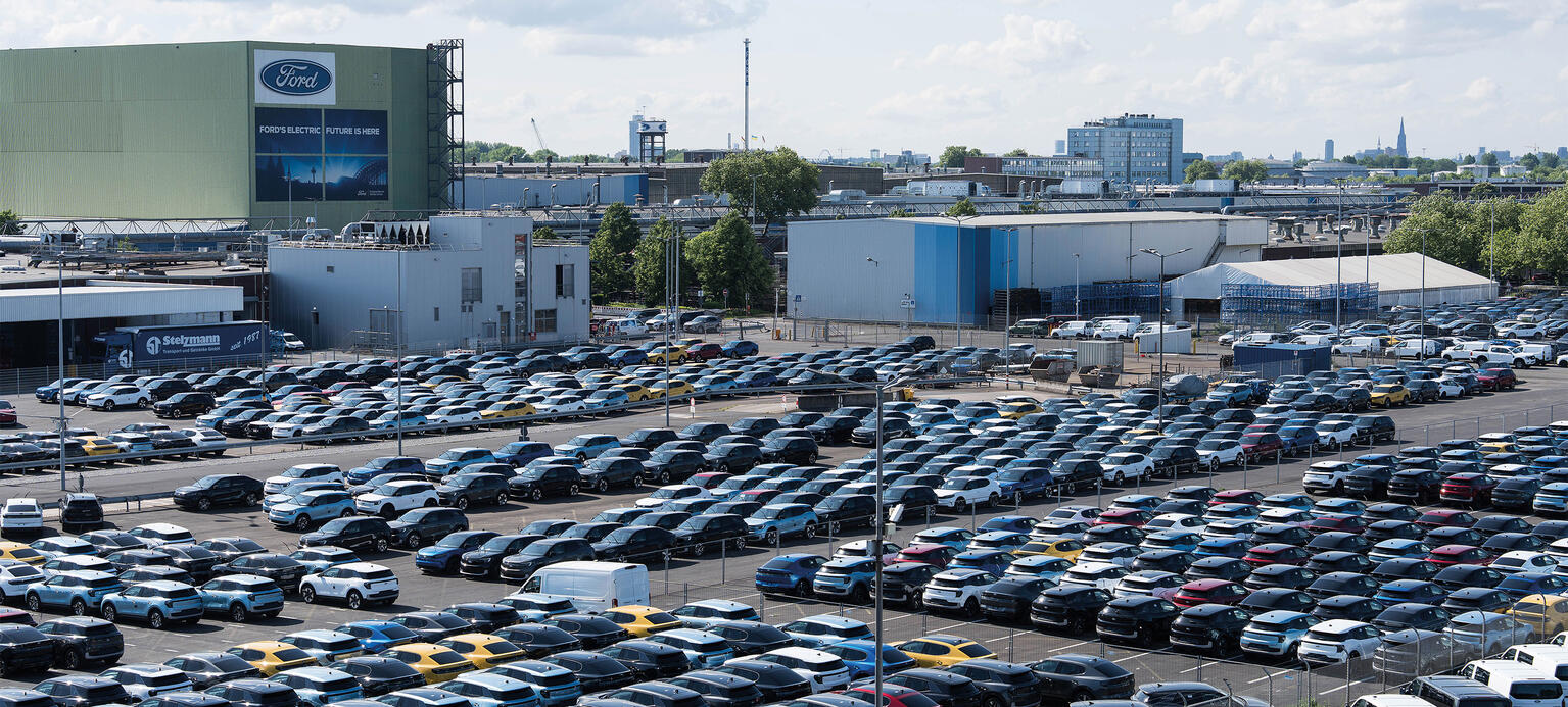 Behäbig wie riesige Schildkröten dösen die neuen E-Autos von Ford in der Maisonne. Die Parkplätze voller unverkaufter Neuwagen in einer Ecke des Industriegebiets machen den Menschen, die vom Kölner Ford-Werk leben, große Sorgen. Seit 1931 baut Ford hier Autos. Doch das Geschäft mit den vollelektrischen Modellen Capri und Explorer, die um die 50.000 Euro kosten, läuft schleppend. Es seien die falschen Modelle, hört man immer wieder. Zu groß, zu teuer.