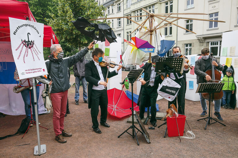 Anfangs hatte er sich gefreut über die schnelle und unbürokratische Soforthilfe von 9000 Euro. Nun fürchtet er, das Geld zurückzahlen zu müssen. „Nordrhein-Westfalen und Berlin hatten im Internet veröffentlicht, dass es auch für den Lebensunterhalt gedacht ist“, sagt Gewerkschafterin Mirschel. „Dann wurde es mit den Bundeshilfen zusammengelegt, und seither darf es nur für Betriebskosten ausgegeben werden.“ Doch bei Soloselbstständigen wie Martin Ehrhardt greift der übliche Betriebsbegriff nicht. Deshalb fordert Mirschel, ihn bei Corona-Hilfen zu ändern. Für Martin Ehrhardt, der auch stellvertretender Vorsitzender der Verdi-Fachgruppe Musik in NRW ist, heißt das: „Mein Betrieb bin ich.“ Wenn Soforthilfen gesunde Betriebe retten sollen, bedeute das im Fall von Soloselbstständigen, dass sie zu essen und ein Dach über dem Kopf haben; dass sie die Hilfen auch für ihren Lebensunterhalt verwenden dürfen.