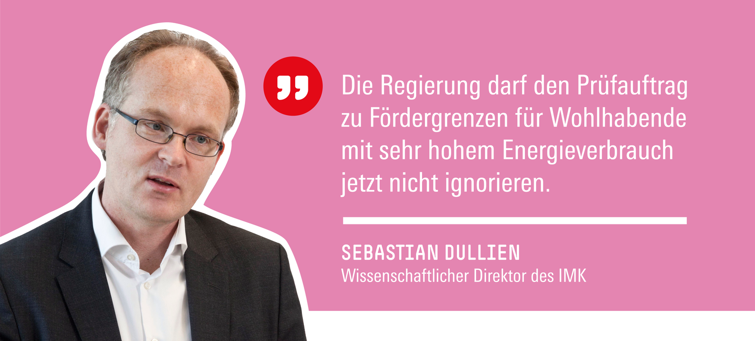 Die Regierung darf den Prüfauftrag zu Fördergrenzen für Wohlhabende mit sehr hohem Energieverbrauch jetzt nicht ignorieren, sonst droht am Ende eine soziale Schieflage der Entlastungen und Skandalisierungspotenzial durch Populisten. Hier ist jetzt die Regierung mit ihren Ministerialapparaten gefragt, bis zur Verabschiedung eines Gesetzes eine praktikable Lösung zu erarbeiten. Gelingt das nicht, wäre das ein Versagen der Regierung – nicht der Kommission.